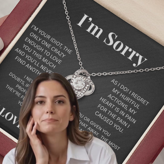 'I'm Sorry - Love Knot Necklace. I'm your idiot, the only one crazy enough to love you this much, and you'll never find another. As I do! Regret my hurtful actions. My heart is in pain for the pain I caused you. I never should have hurt you or given you doubts. If only I could take that away. The most profound apologies are not heard by the ears; they're felt by the heart. I'm truly sorry and hope you will allow me to make it right.